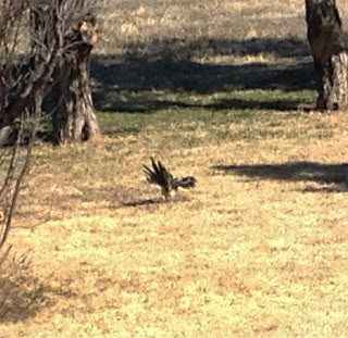 We have a resident Roadrunner that hangs around in the front pasture. We have been seeing him for several months and the other day he was playing around in the front yard. Something even scared him in one of the pictures. He is so much fun to watch.
